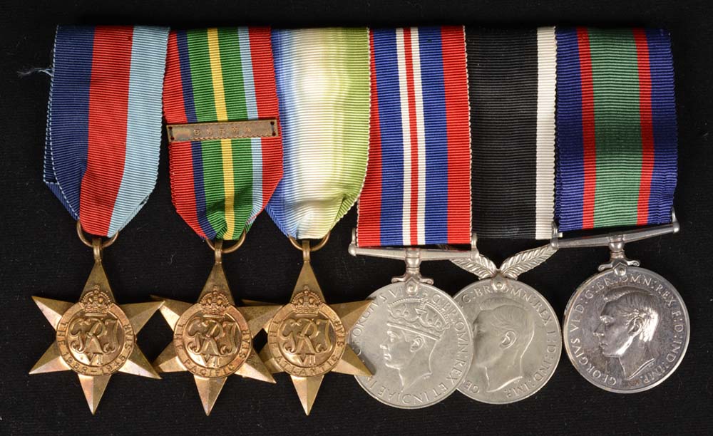 The 1939-45 Star is the first in a series of eight campaign stars instituted in 1945 to recognise service in World War Two. The ribbon has three equal vertical stripes of dark blue, red and light blue. The dark blue stripe symbolises the service of the Navy and the Merchant Navy, the red stripe symbolises the service of the Army, and the light blue stripe symbolises the service of the Air Force. The equal width bands represent the equal contributions of the three service arms towards victory. The ribbon was devised by King George VI. Two clasps could be awarded with this medal: ‘Battle of Britain’ and ‘Bomber Command’. Only aircrew would qualify for these clasps although a small number of Fleet Air Arm naval pilots flew for the air force and would be eligible for the ‘Battle of Britain’ clasp.