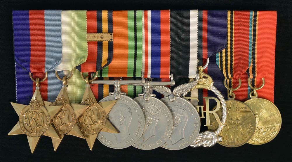The 1939-1945 Star, The Atlantic Star, The Burma Star, The Defence Medal, The War Medal 1939-1945, The New Zealand War Service Medal, Royal Naval Volunteer Reserve Decoration, Jubilee Medal for 40 Years of Victory in the Great Patriotic War 1941-45, Jubilee Medal for 50 Years of Victory in the Great Patriotic War 1941-45