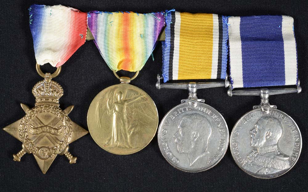 Note: The medals here are displayed in the order in which they were donated to the museum, representing how they were worn by their recipients. In this case, Tebay’s Victory Medal is mounted incorrectly and should be placed after his British War Medal 1914-1920.