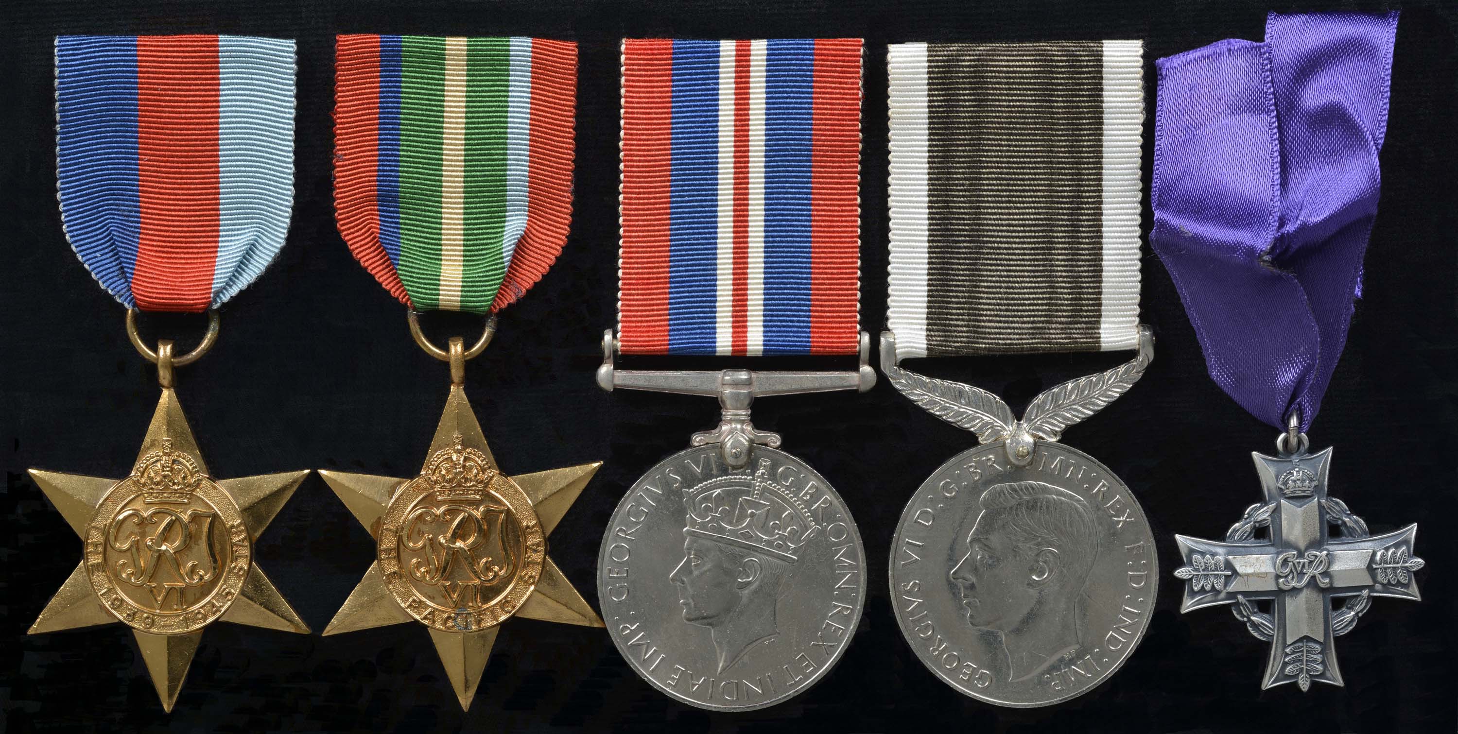 The 1939-45 Star is the first in a series of eight campaign stars instituted in 1945 to recognise service in World War Two. The ribbon has three equal vertical stripes of dark blue, red and light blue. The dark blue stripe symbolises the service of the Navy and the Merchant Navy, the red stripe symbolises the service of the Army, and the light blue stripe symbolises the service of the Air Force. The equal width bands represent the equal contributions of the three service arms towards victory. The ribbon was devised by King George VI. Two clasps could be awarded with this medal: ‘Battle of Britain’ and ‘Bomber Command’. Only aircrew would qualify for these clasps although a small number of Fleet Air Arm naval pilots flew for the air force and would be eligible for the ‘Battle of Britain’ clasp.