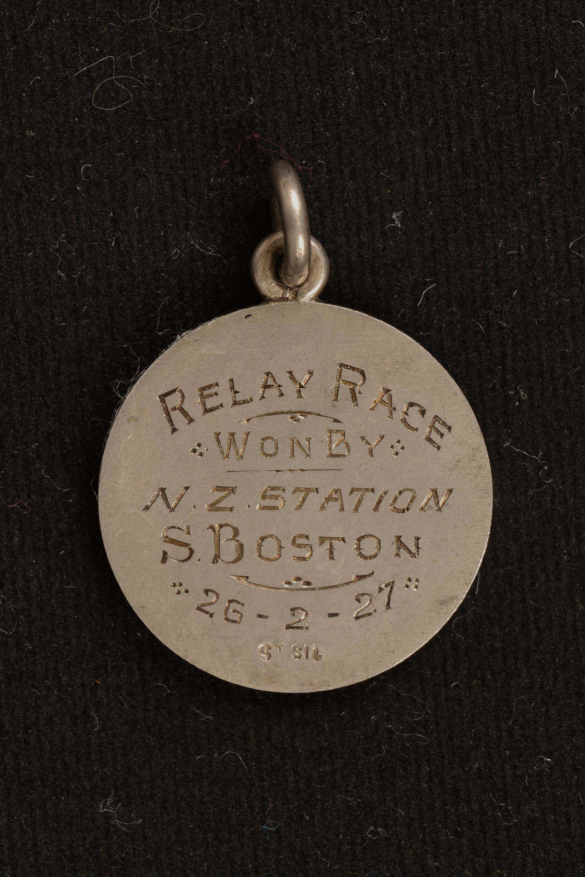 Silver medallion awarded by the Ponsonby Amateur Swimming Club for the Relay race won by NZ Station 26.02.1927.