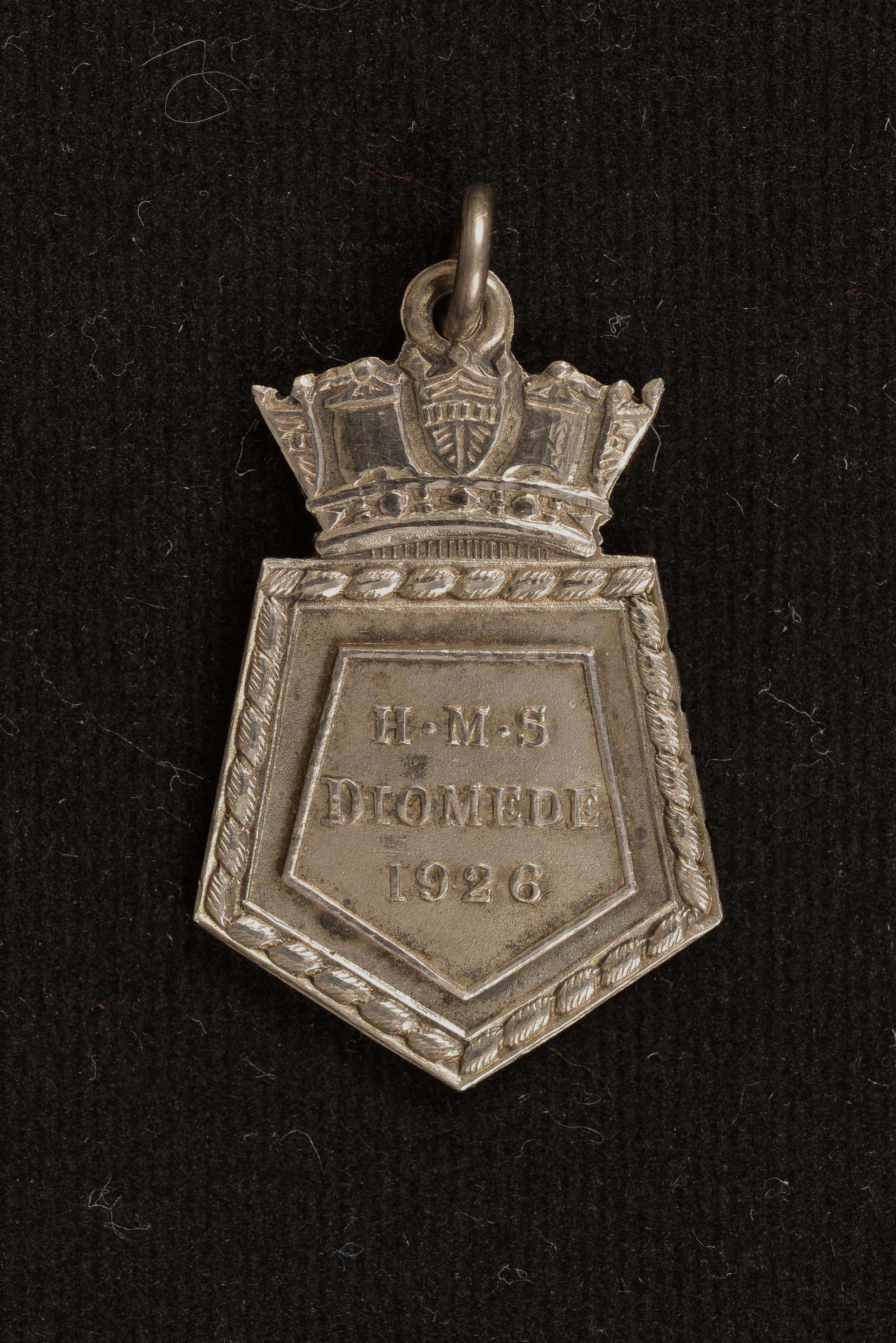 Silver medallion awarded for the Divisional Soccer Competition to HMS Diomede 1927.